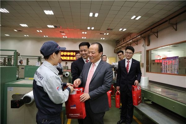 走进公辅保障中心燃气站值班室,张总热情地给值班人员递上慰问品,询问燃气站运行情况,并感谢燃气站工作人员日夜值守确保安全稳定运行。张总来到冷修后的三分厂拉丝车间,微笑着向正在辛勤作业的拉丝工人们拜年,感谢他们春节期间的坚守。走进络纱工段,见到一个个忙碌着的络纱女工们,张总一一和她们握手拜年,并递上慰问品。