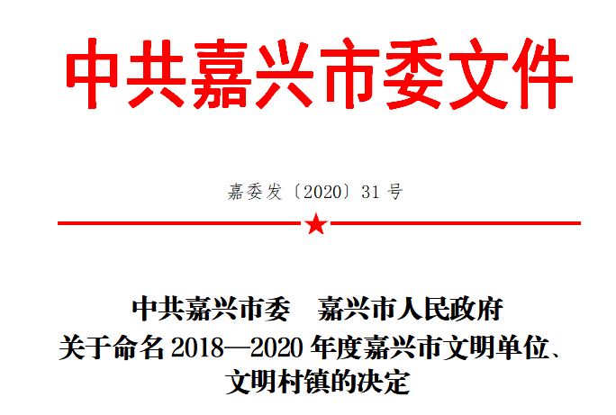 12月7日,中共嘉兴市委办公室印发了嘉委发〔2020〕31号《中共嘉兴市委 嘉兴市人民政府 关于命名2018—2020年度嘉兴市文明单位、文明村镇的决定》的文件,公布了2018—2020年度嘉兴市文明单位、文明村镇的名单,j9九游会官方网站集团榜上有名。